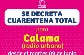 Luego de que desde hace semana el alcalde de Calama junto con otras autoridades ha exigido que decreten cuarentena total en el radio urbano, desde el martes regirá la cuarentena según el Ministro de Salud. En Calama se ha registrado día a día un alto número de contagiados y que … Continúa leyendo Ministro de Salud decreta cuarentena total para la comuna de Calama