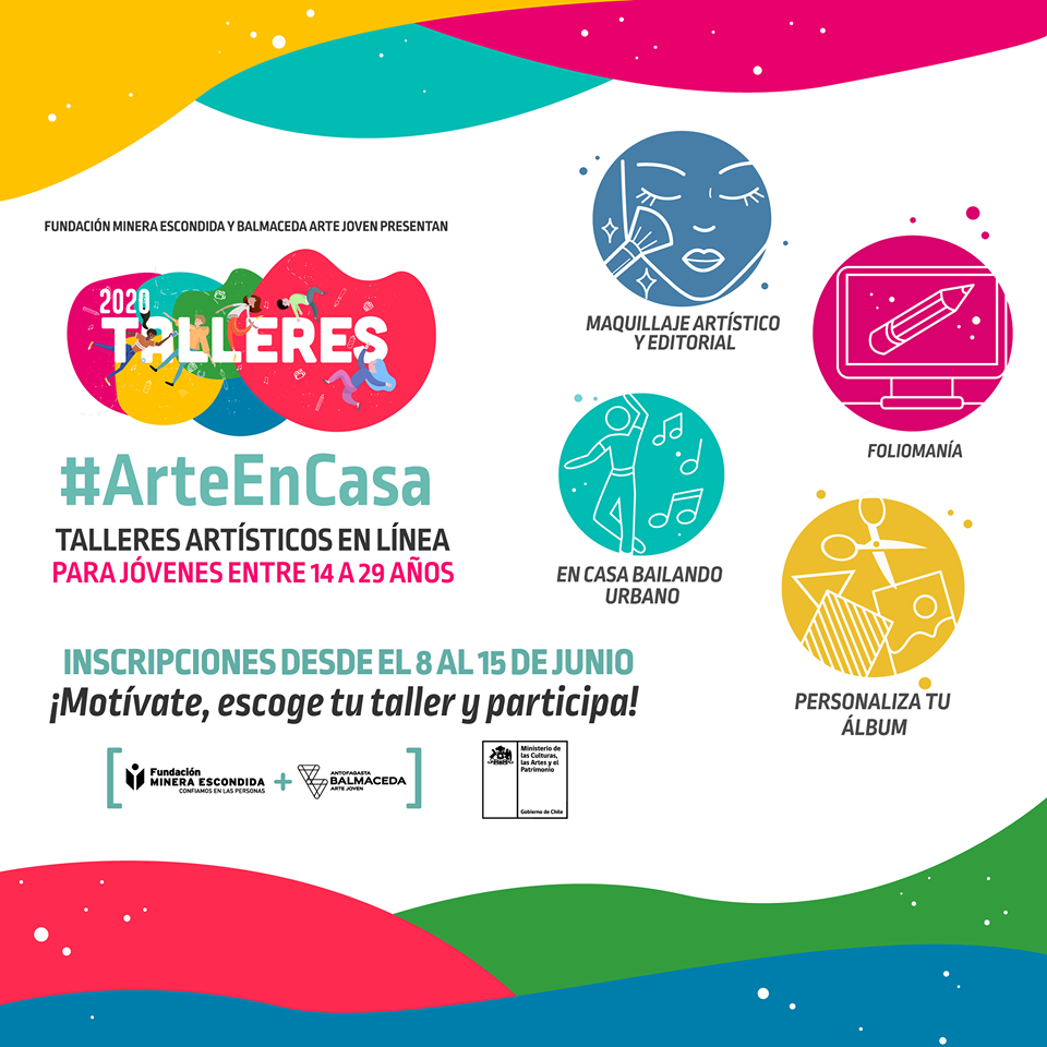 Estos talleres de “Arte en casa” de Fundación Minera Escondida y Balmaceda Arte Joven, tienen como objetivo entregar espacios de expresión, diálogo, convivencia y pensamiento crítico, a jóvenes de todas las comunas de la región de Antofagasta, por medio de actividades artísticas y culturales.