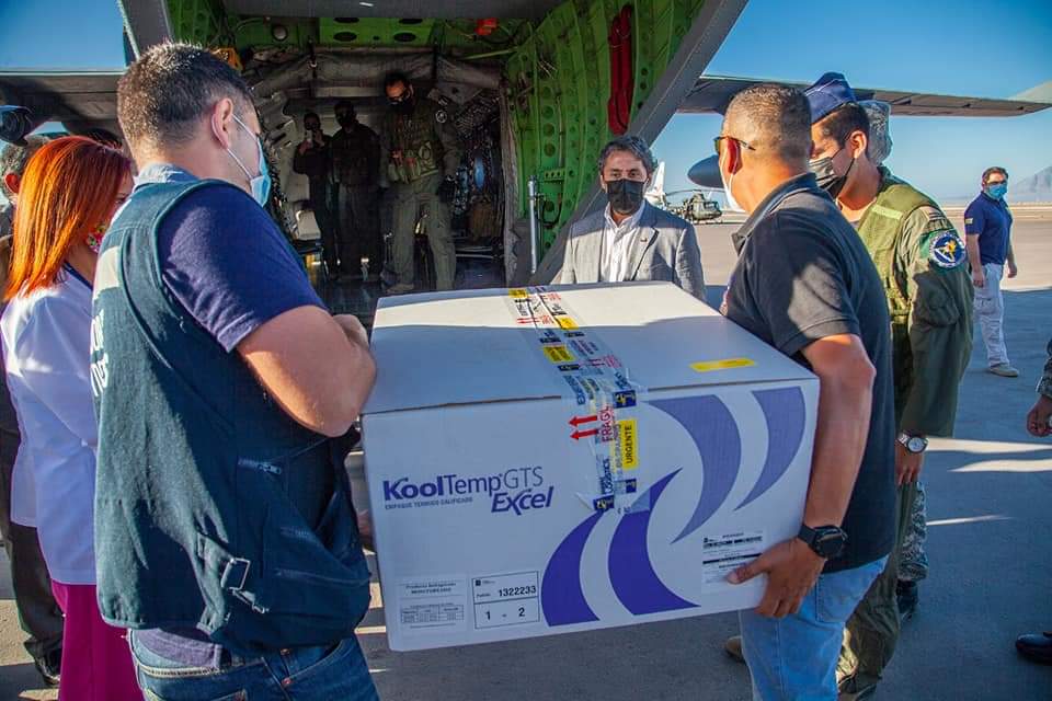 A las 08:20 horas llegó el primer cargamento de vacunas Pfizer en la región de Antofagasta y será distribuida, además, a otras comunas de la región.