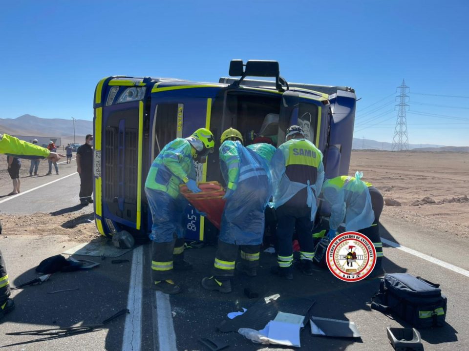 Hasta el lugar llegó personal de SAMU junto a voluntarios de rescate de la Tercera y Cuarta Compañía del Cuerpo de Bomberos de Antofagasta para asistir a las personas afectadas por el accidente.
