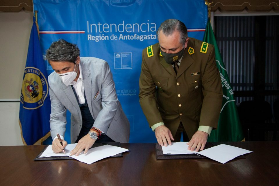 Con el objetivo aumentar y contribuir en la seguridad para la comunidad en la región de Antofagasta, hoy el Intendente de la región de Antofagasta, Rodrigo Saavedra Burgos y al Jefe de Zona de Carabineros Antofagasta, General Gonzalo Castro Tiska firmaron el convenio que permitirá apoyará la reposición de infraestructura y vehículos de Carabineros.