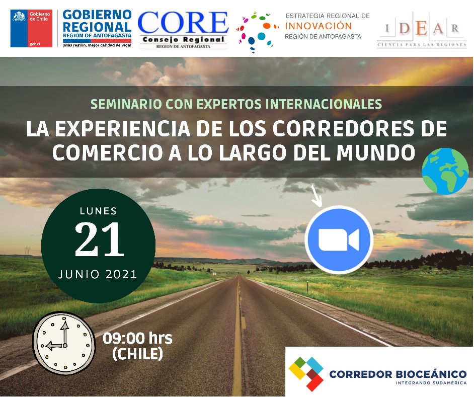 Estas experiencias internacionales en Corredores de Comercio serán un buen complemento para el estudio que ha realizado el Instituto de Economía Aplicada Regional (IDEAR) de la Universidad Católica del Norte para el Proyecto FIC-R “Corredor Bioceánico”, que finaliza este mes. El jueves 24 de junio se realizará otro Seminario con expertos internacionales, para conocer otras experiencias y algunas sugerencias de planificación y gobernanza de Corredores de Comercio Internacionales, ya que el que unirá a Brasil con Paraguay, Argentina y los puertos del norte de Chile es el primero que se está construyendo en Sudamérica.
