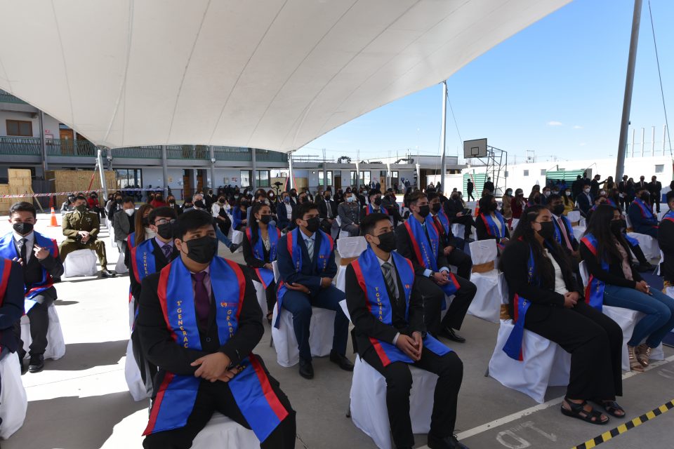 El Colegio Técnico Industrial Don Bosco Calama fue creado en 2016 por la Fundación Educacional Región de la Minería, conformada por el Arzobispado de Antofagasta, la AIA y la Congregación Salesiana. Su objetivo principal fue crear un establecimiento de educación técnico profesional que diera respuesta a las necesidades de capital humano de la industria, entregando apoyo a las familias que más lo necesitan en la provincia del Loa. Es mixto y gratuito, contando hoy con 834 estudiantes, donde el 38% de ellos son mujeres, mientras que el 21% pertenece a una etnia originaria. Cabe destacar que los estudiantes de este establecimiento presentan un 83% de vulnerabilidad socioeconómica.El subsecretario de Minería, Edgar Blanco, entregó un saludo virtual, llamando a los estudiantes a tener en mente los desafíos que vienen en el plano tecnológico: la electro movilidad, la digitalización y el uso de energías renovables. Además se apersonó Marco Vivanco, seremi de Gobierno. “Quiero felicitar su esfuerzo y el de sus familias por realizar este proceso en circunstancias difíciles para todos. Ustedes son el futuro de CHile las Región de Antofagasta”, señaló la autoridad.