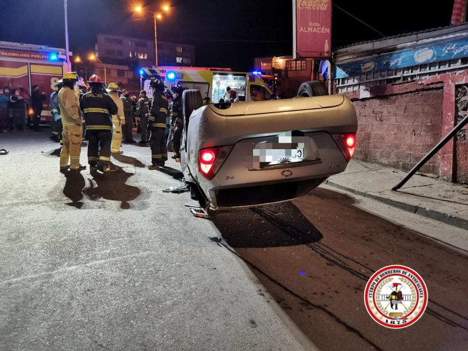 Dos personas policontusas fue el resultado del volcamiento de un vehículo y posterior atropello ocurrido la noche de este sábado en la intersección de Avenida Bonilla con pasaje Vilama, en el sector norte de Antofagasta.