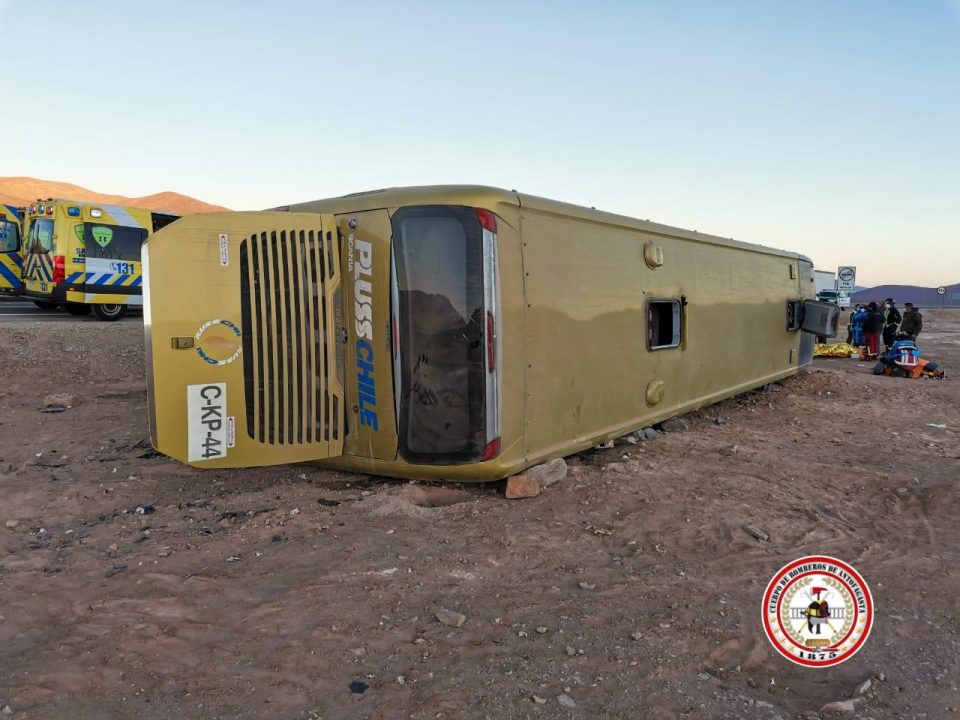 Por causas que se investigan, el conductor del bus que transportaba 30 personas y que cubría la ruta Santiago – Calama perdió el control del vehículo y volcó hacia el lado derecho de la vía.