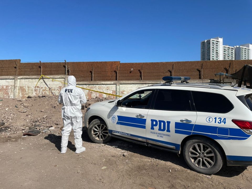 Detectives de la Brigada de Homicidios de la PDI Antofagasta, concurrieron esta mañana hasta un sitio eriazo en calle Mejillones con Vallenar, a la altura del Puerto Seco, donde fue hallado el cuerpo de una persona de 57 años.