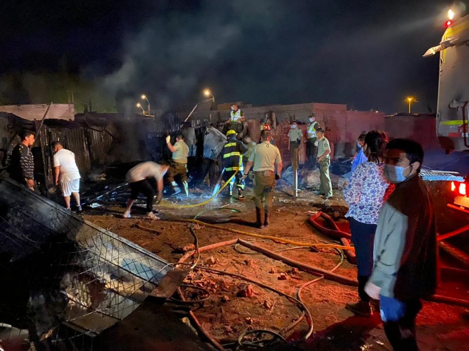 En el lugar trabajaron Bomberos y Carabineros de Baquedano y Sierra Gorda, presentando ayuda en la extinción del siniestro, pero también en el rescate de los enseres de los afectados.