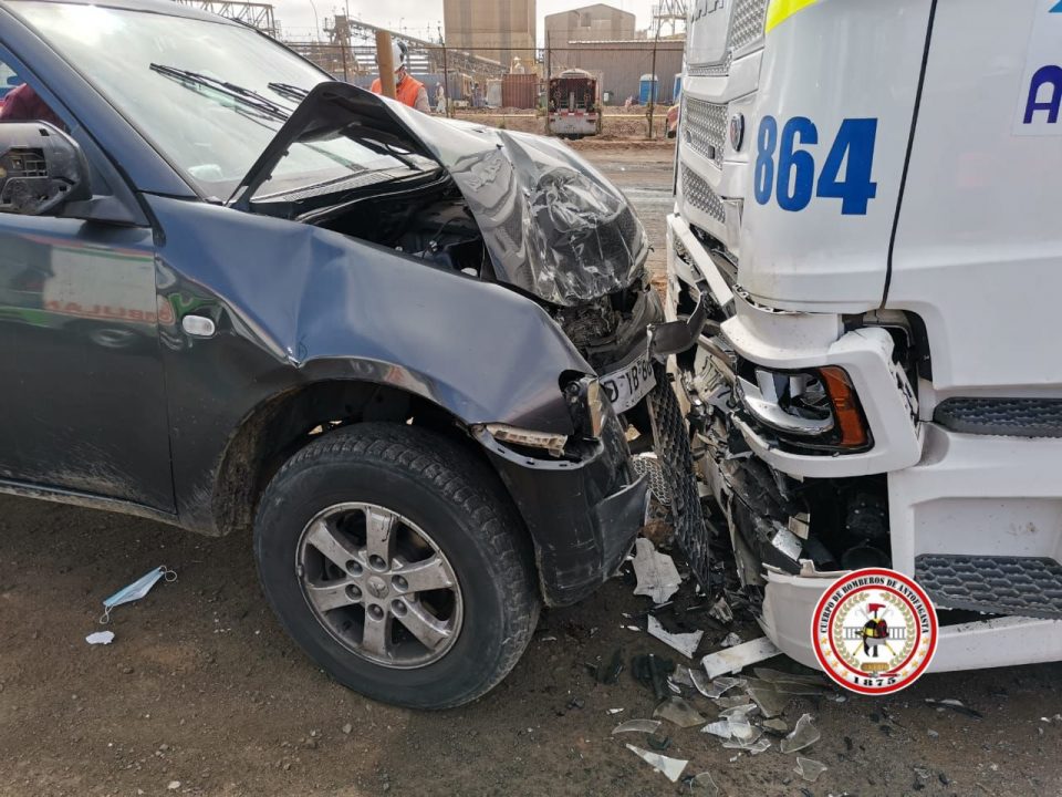 Cerca de las 09:30 am, fueron despachadas lugar las unidades B5 y B8 del Cuerpo de Bomberos de Antofagasta, quienes constataron en el lugar la ocurrencia del choque en donde resultó herida la mujer, acompañante del conductor de la camioneta, quien resultó ileso.