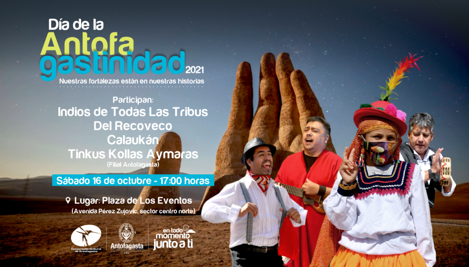 El sábado 16 de octubre a contar de las 17:00 horas en la Plaza de los Eventos, se conmemorará el “Día de la Antofagastinidad” con relatos patrimoniales y distintas bandas locales.