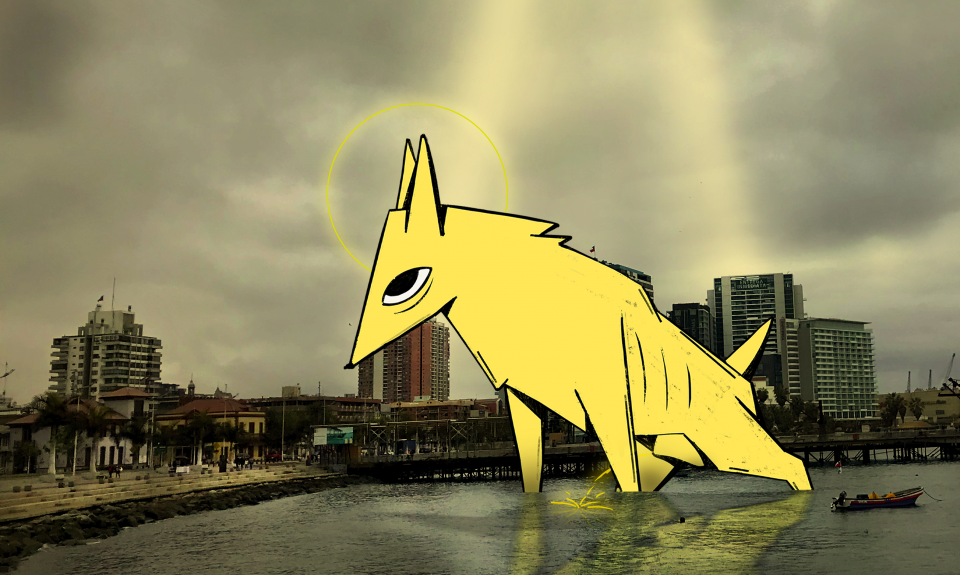 Bajo la autoría del joven artista nortino, Álvaro Hanshing, Galería BAJ Antofagasta presenta su primera exposición “MEAR” y el deambular callejero de un kaiju canino amarillo que recorre y “marca” la ciudad, expulsando de su vejiga rabia y descontento acumulado por años.
