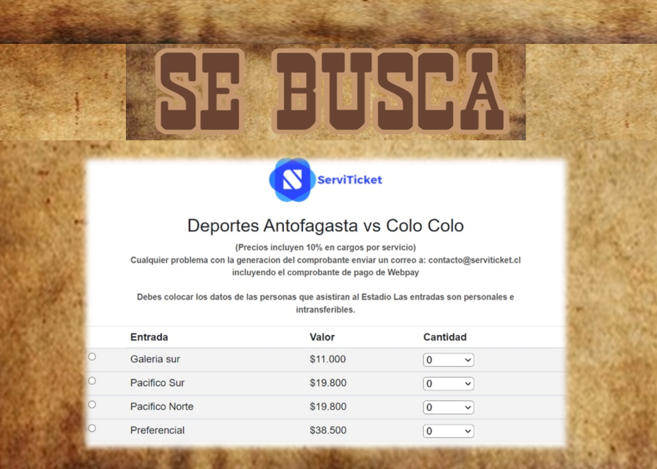 16:30 horas del 30 de noviembre fue la fecha anunciada para liberar los boletos para el encuentro de Club Deportes Antofagasta vs Colo Colo. Una hora antes comienza el problema, el sitio web que vende los boletos, Serviticket.cl ya se encontraba caído reportando error.
