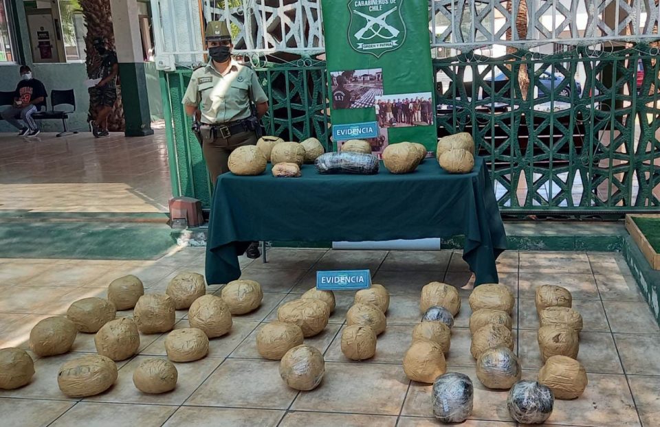 En total Carabineros incauta 48 kilos 326 gramos de drogas, entre marihuana y pasta base de cocaína cuyo avalúo supera los 245 millones de pesos.