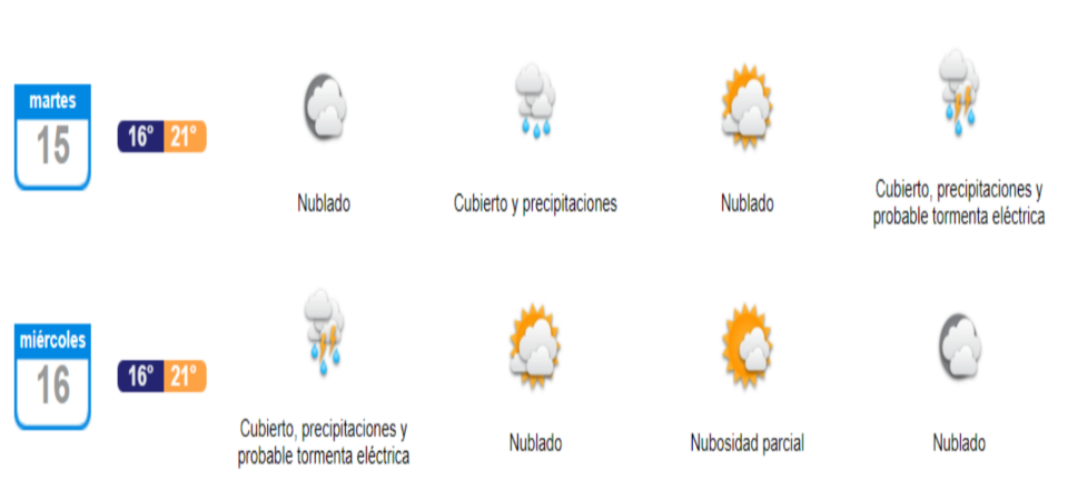 En concreto, se pronostica precipitaciones para la mañana del martes 15 de marzo, y precipitaciones y probable tormenta eléctica para la noche del mismo día y madrugada del miércoles 16.