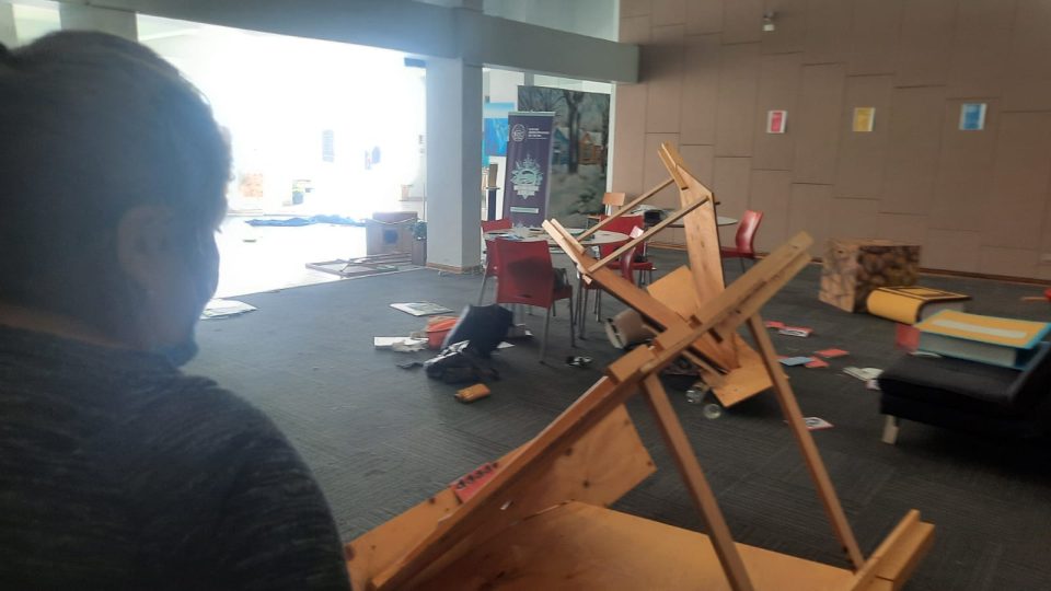 “Elevamos la correspondiente querella por los hechos registrados el 1 de abril, cuando un antisocial causó varios destrozos sobre el mobiliario de nuestro Centro Cultural y las obras de arte de la más reciente exposición ‘El Tesoro de Taltal’. Los daños se estiman en más de $3 millones, sumado a la sensación de pánico que envolvió a cerca de 80 personas que se encontraban en el principal espacio de convivencia ciudadana que tenemos en la comuna. La gente atemorizada debió estar escondida por más de media hora, hasta que se hizo presente Carabineros”, manifestó el alcalde de Taltal, Guillermo Hidalgo.