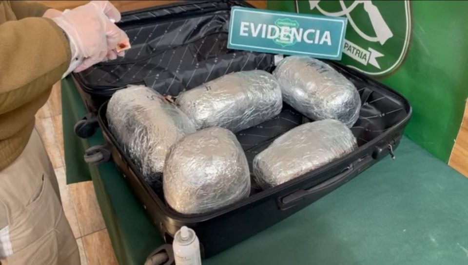 De esta manera y luego de fiscalizar a los pasajeros se establece que dos de ellos, que viajaban juntos, ambos chilenos, llevaban en su equipaje 13 paquetes sospechosos de transportar droga.