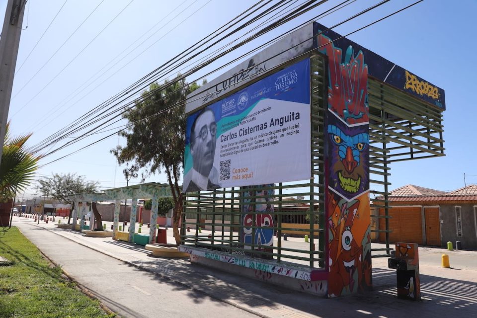 Tomás Paniri, Justo Ballesteros, Eduardo Abaroa, Alejandrina Olivares, Carlos Cisternas y Héctor Pumarino Soto son los rostros que la comunidad podrá apreciar en el Paseo Granaderos, junto a una pequeña reseña de su aporte a la comuna y que podrán seguir conociendo en la página web de la Corporación de Cultura y Turismo por medio de un código QR ubicado en la misma imagen.