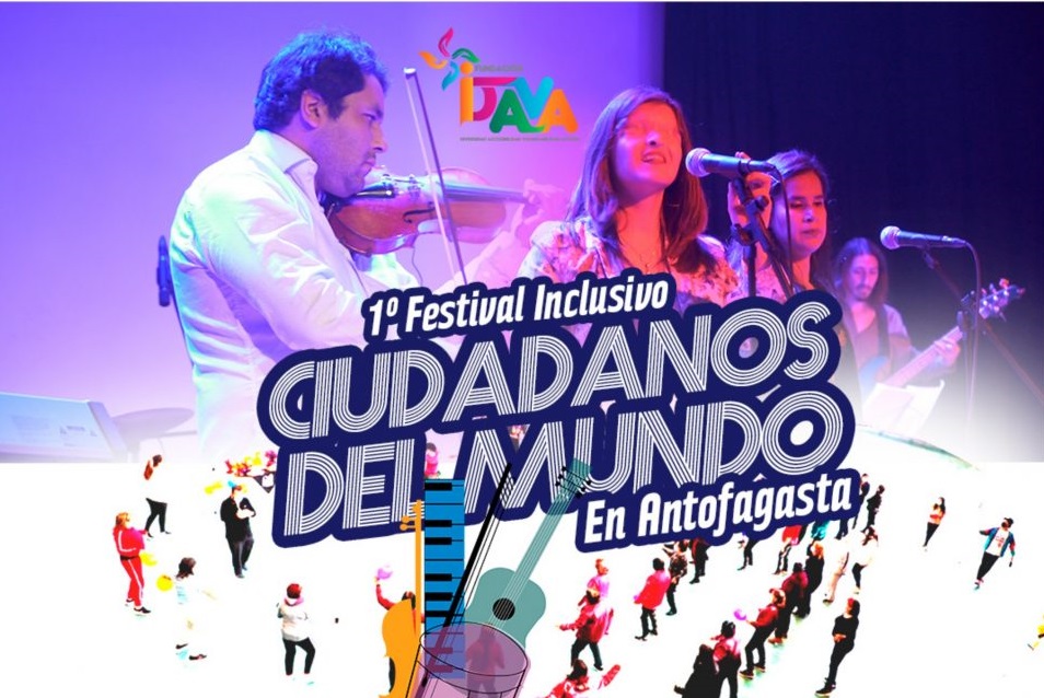 El sábado 30 de julio, a las 16:30 horas, se llevará a cabo el 1°festival inclusivo “Ciudadanos del Mundo” organizado por la Fundación IDAVA y la Corporación Cultural de Antofagasta, el cual estará abierto a bandas regionales que tengan entre sus integrantes al menos una persona con discapacidad o una persona migrante, así como también, a aquellos que aborden la diversidad en sus productos artísticos.