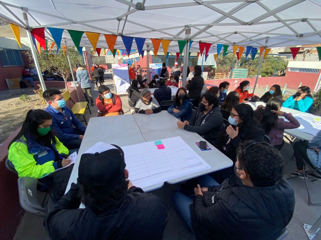 La jornada congregó a numerosas vecinas y vecinos, líderes y dirigentes sociales del sector, acompañados de representantes de organismos e instituciones públicas quienes trabajaron en distintas mesas temáticas que abordaron las brechas y oportunidades del barrio.