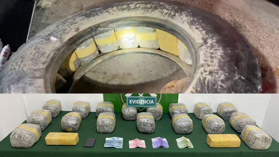 De acuerdo a los antecedentes, la incautación se concreta luego que personal del OS7 fiscalizará un vehículo particular que se desplazaba en dirección sur y es gracias al olfato entrenado del can antidroga Fucsia del Emblema Verde, que se detecta la presencia de sustancias ilícitas al interior de un neumático que se encontraba en el portamaletas.