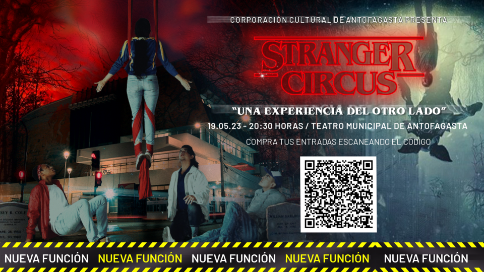 Luego que los fanáticos agotarán las entradas para el espectáculo “Stranger Circus: Una Experiencia del Otro Lado”, la Corporación Cultural de Antofagasta, anunció la realización de una nueva función de esta innovadora propuesta artística, la cual fue programada para el viernes 19 de mayo a las 20:30 horas en el Teatro Municipal.