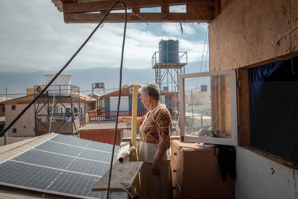 “Uno de mis nietos, el de 12 años, me dijo hace unos días: estoy feliz, ahora tengo luz, puedo ver tele, puedo hacer mis tareas, y no levantarme a las 6 de la mañana a echar a andar el motor. Igual que una vecina de la tercera edad, que un día me llamó llorando, ya que ella ni siquiera tenía un generador y tenía que esperar a que llegara un vecino para que le prestara electricidad. Entonces las emociones para esta comunidad con la instalación de los paneles han sido tremendas y estamos todos muy agradecidos”, contó Gelda Ábalos, presidenta de la Junta de Vecinos.