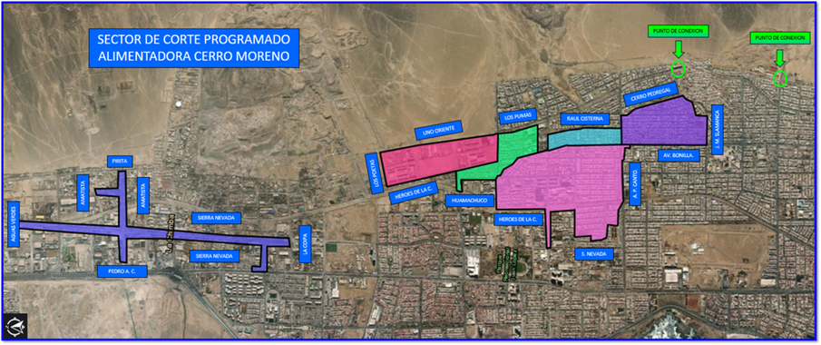 Esta suspensión de suministro se realizará para ejecutar las interconexiones de la red de agua potable Alimentadora Cerro Moreno.
