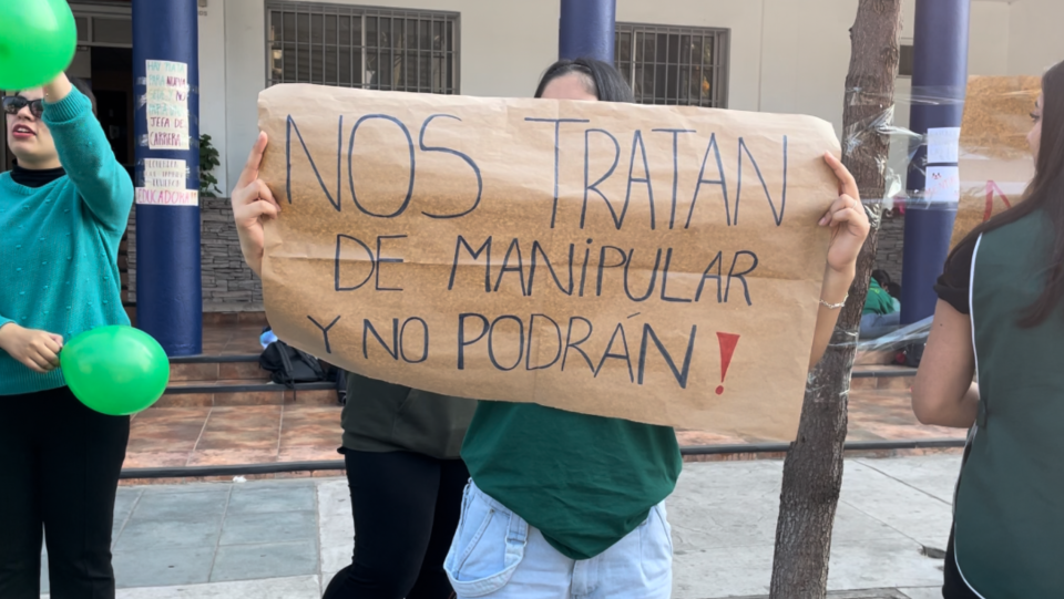 “Hace 10 meses se hizo un cambio de jefa de carrera, y finalmente, a la persona que nombraron como jefatura interina nunca se le contrató. El día de hoy nos encontramos en una situación donde la rectoría y las autoridades de la Universidad nos están mintiendo, nos quieren manipular para que tomemos ciertas decisiones”, agregó.